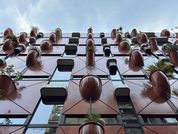 雑記帳のページにて9月16日に言及したオーガニックビル。 規則正しく配された突起状の植木鉢に育つ緑が、赤銅色の外壁との鮮烈なコントラストを成す。