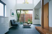 コート状の北向きテラスに面したリビングスペース